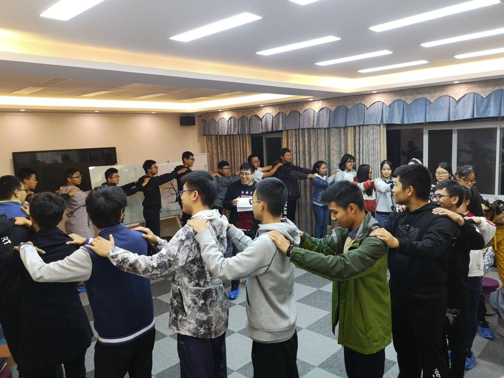 首先,我们在靳老师的带领下完成了“小雨-中雨-大雨-暴风雨”的热身游戏,逐渐进入状态。随后,同学们围成一个圈,互相捶背捏肩,并由此感受到了互帮互助的快乐。紧接着,我们签订了“心灵的契约”,然后被随机分为四组,进行了一场紧张刺激而又笑声不断的“队名”、“口号”、“对歌”以及“自我介绍滚雪球”友谊赛,根据各队的表现,同学们纷纷投出了自己心目中的最佳小队。两轮环节后,靳老师计算出了各队总分,最终“无敌真寂寞”队和“对不”队荣获并列第一,“爱学习”队和“不凉”队紧随其后。