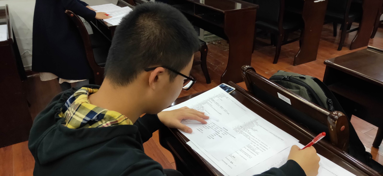 考试在晚七点整正式开始,大家开始专心的作答。其中,有一位同学在开考后仅十分钟就结束了作答,而且在成绩出来后,这位同学的成绩位列第一。在接下来的半个小时内,剩余的同学也都陆续完成了考试。