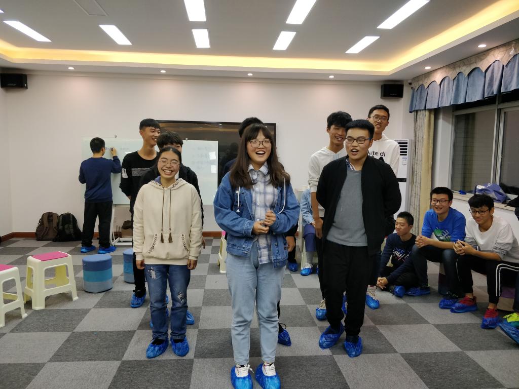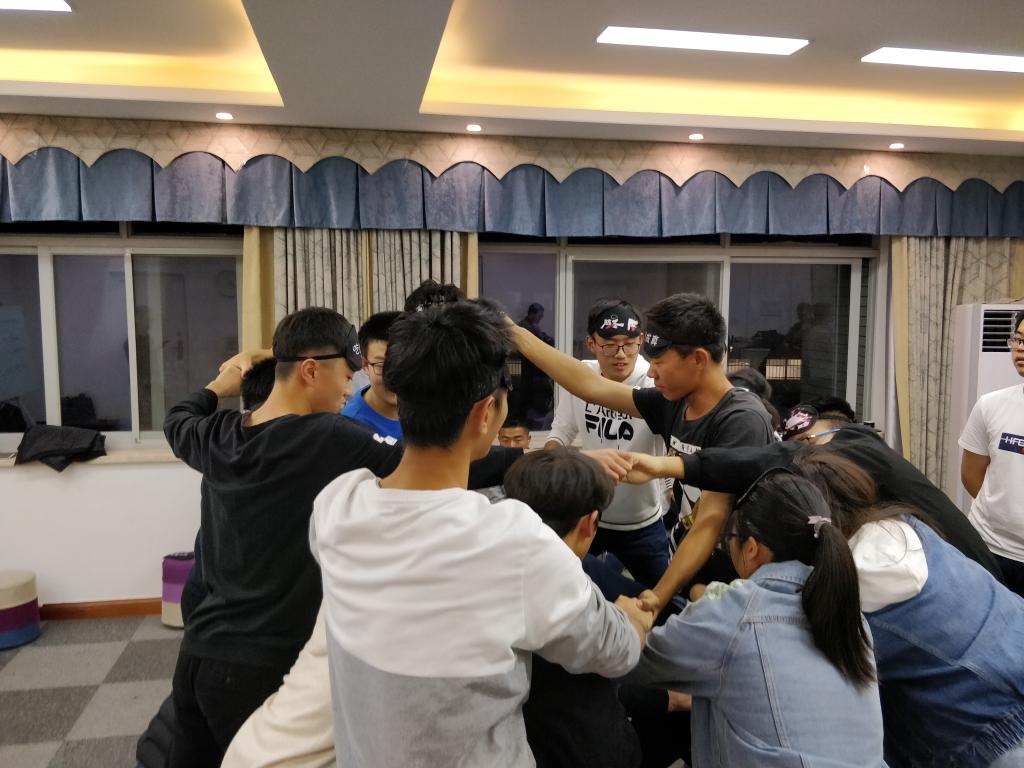 为了放松大家的心情和调动大家的积极性,在每场活动的开始,主持老师都会让大家围成一圈,为前面的同学捶捶肩、揉揉背。放松过后,主持老师将大家随机分成了几个小组,并给予时间商讨队名、团队契约、logo、队歌等。最后进行的团队展示。随后进入游戏阶段,依次进行了姓名滚雪球、解开千千结、“手忙脚乱”、“啄木鸟”等活动环节。在欢声笑语中,参与者们更加了解彼此,同时也体会到了团队协作的重要性。