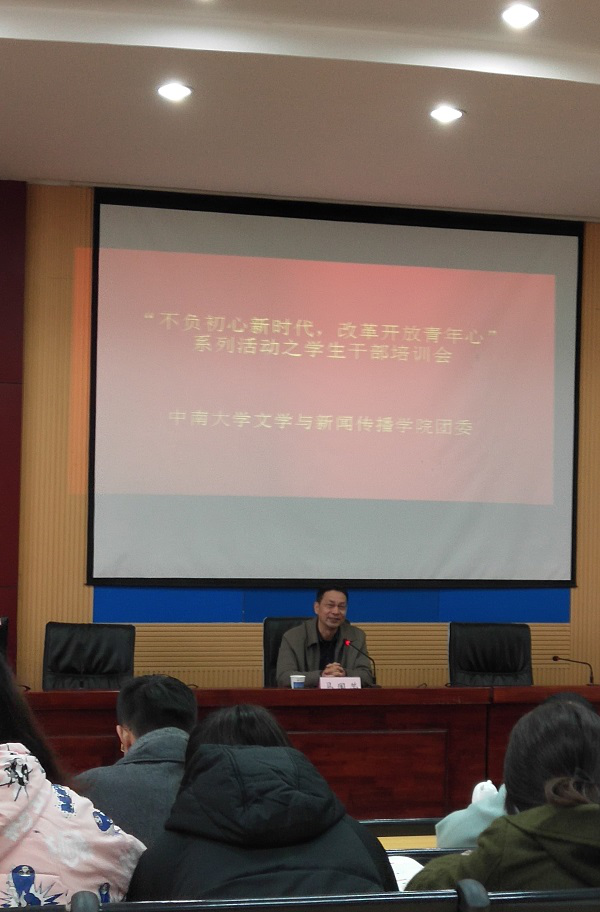 “不忘初心新时代,改革开放新青年”系列活动之心助会和学生会干部会议于2018年11月11日上午9:00,在文法楼222报告厅成功召开。此次会议马国荣书记、李连凯老师及周婷老师亲临现场,对心助会学生干部进行了指导教育。