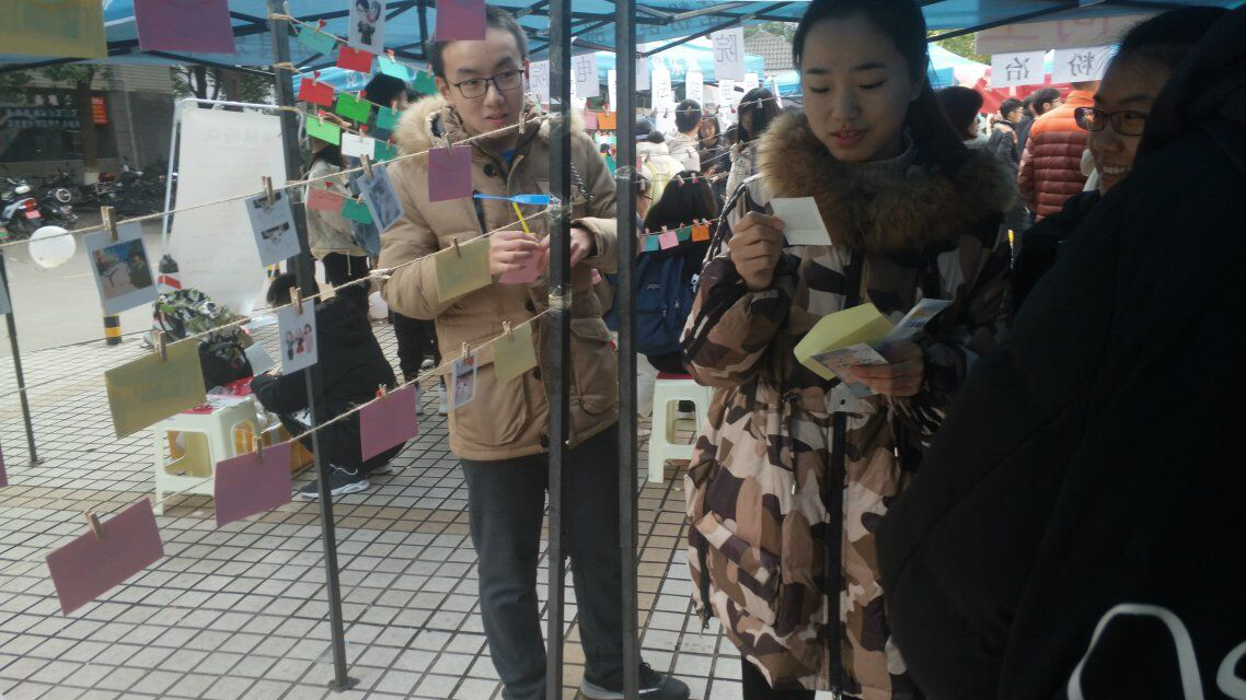 活动围绕“时光低吟,爱与远方”的主题,以“小学-中学-大学”这样一条时间轴为主线共设置四个游戏,分别是“汉字失忆症”、“青春歌单”、“挑战任务卡”、“遇见未来”。参与者游戏者沿着这条时间之轴完成一个个的游戏,仿佛历经一场时光旅行,既重温了青葱过往,也展望了似锦未来。老师上课反复念叨却总是遗忘的易错字,课间你与我一人一只耳机聆听的歌曲,心中向往憧憬的大学的样子,都在脑海中一边又一遍地浮现。甜美的回忆和美好的向往在这略带寒意的冬日给同学们带来了阵阵温暖。