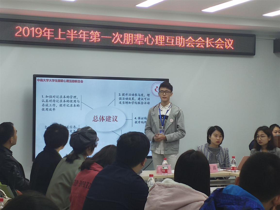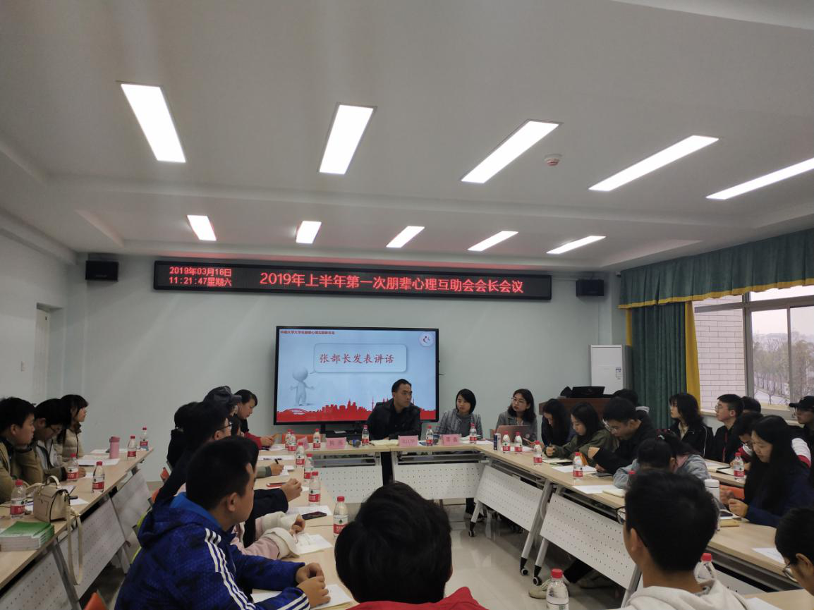 为总结检视上学期各学院朋辈心理互助工作并为新学期心理互助工作谋篇布局,中南大学朋辈心理互助联合会(以下简称“校心联”)会长会议于3月16日上午9:30在新校区毓秀楼举行。中南大学学工部张江华副部长、大学生心理健康教育中心熊燕老师、姜美霞老师,校心联指导老师谭鑫老师以及各学院心助会会长参与了此次会议。