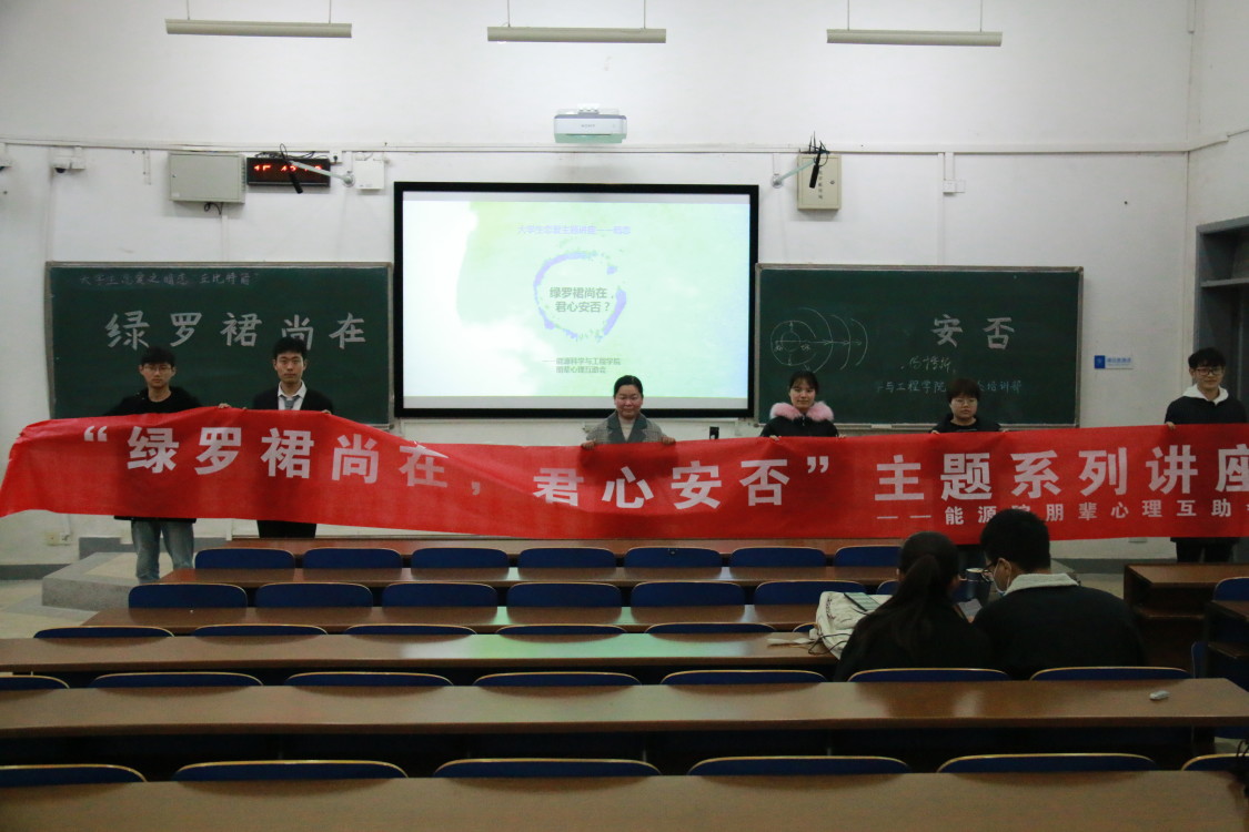 为了加强大学生心理健康教育和普及大学生恋爱心理知识,3月24日下午2点,心助会在新校区D座128教室开展了“绿萝裙尚在,君心安否”大学生恋爱主题讲座。这次讲座面向能源院广大心委和寝室长,旨在帮助同学们更好的了解暗恋的心理成因以及应对办法。中南大学校心理中心的马晓虹老师的精彩讲座赢得了现场同学的阵阵掌声。