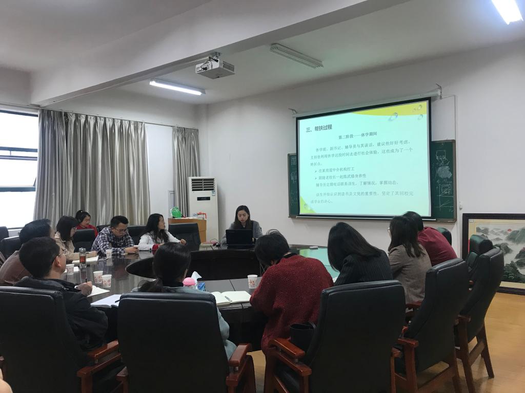 首先,由辅导员将这起帮扶案例从学生的基本情况、关注原由、帮扶过程、帮扶效果、帮扶过程中的几点感悟以及帮扶过程中的困惑六个方面进行了全面的介绍。同时,老师提出了两个在本个案处理过程中,也是学生工作中常常会遇到但又很让辅导员们感到十分棘手的困惑: