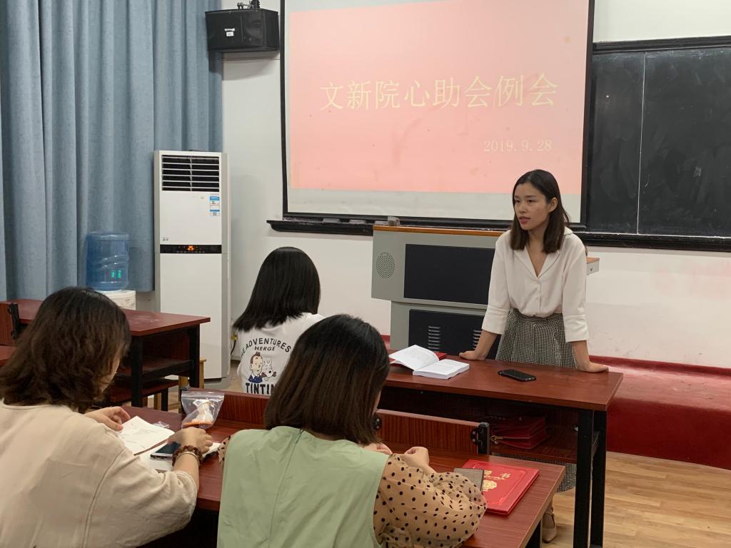 新学期开始的第一个月,文新院心助会已完成了招新工作、吸纳了许多新干事,并举行了一系列线上线下活动。为了更好的开展接下来的工作,9月28日晚7点,文新院心助会例会于文法楼130召开,此次会议旨在对本月招新等各项工作进行总结,并对接下来一年里心助会的工作进行安排。