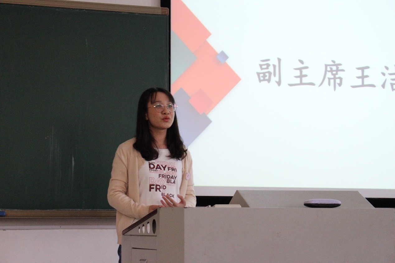 大会第五项,由各部门部长上台讲话,简要介绍本部门职能:办公室负责财务管理、公文拟定;活动部负责活动的策划和举办;外联部负责与外校的联络交流;宣传部负责活动宣传以及文创制作;研学部抓取心理热点,解决问题;组织部对接二级学院,上传下达;解心团负责开放日活动,增加心理咨询理解。