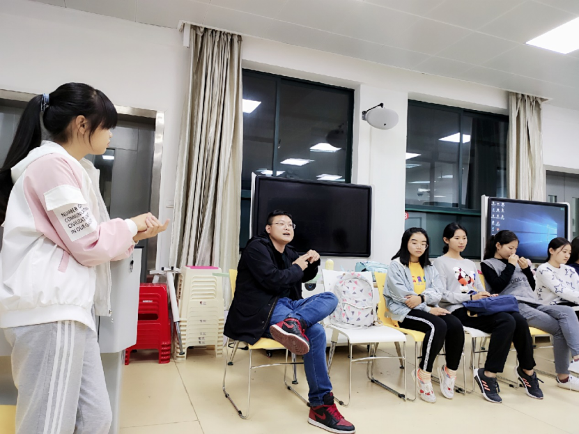 在屈湘南老师的带领下,轻松欢快的团辅从进行欢迎仪式开始啦。按照带领者的指引——“现在开始下小雨(食指相互敲击),小雨变成了中雨(双手拍打大腿),中雨变成了大雨(双脚跺脚),大雨变成了暴风雨(双手拍掌),暴风雨越下越大(鼓掌逐渐密集),用这如暴风雨般的激烈掌声送给自己!”