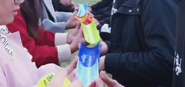 首先两个班级的同学分为四组。各自确认队名,口号,队歌等。然后张沛毅老师为大家准备了三个游戏,“同心鼓”、“接板传球”以及“月球漫步”来培养大家的团队合作意识。游戏中队与队相互比拼,每次输的队伍需要表演节目,极大调动了大家的积极性,现场大家热情高涨,欢声阵阵。最后,本次活动在张沛毅老师的总结发言中宣告圆满结束。
