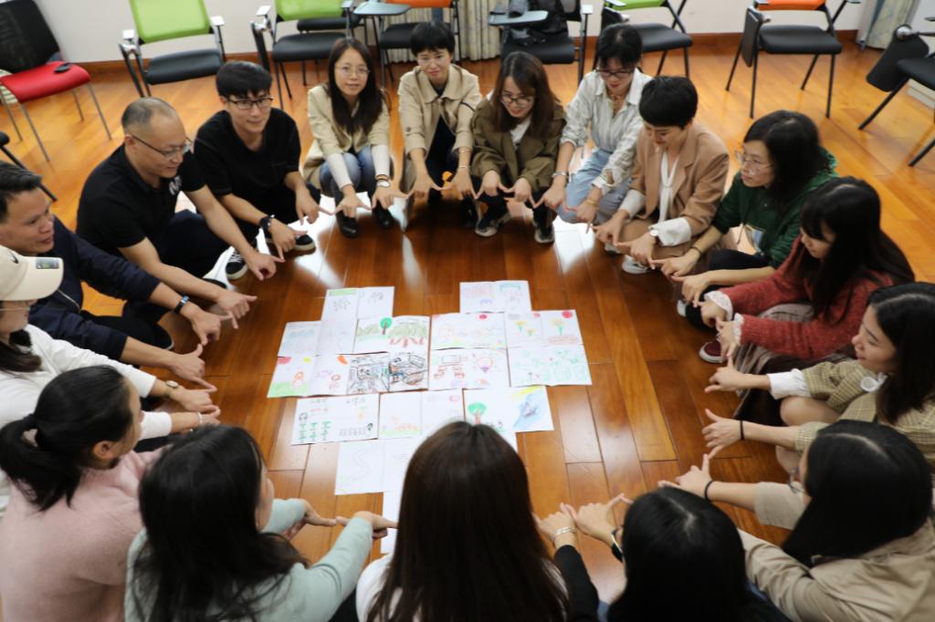在许宁老师带领的示范团体辅导活动中,“滚雪球”让老师们记住了彼此的名字、学校和特点; “心有千千结”让心与心靠近,体验了齐心协力的快乐;理想与现实的绘画以及分享让成员们有了更深的交流;“盲行”让老师们暂时放下所有,把自己信任地交给对方。同时,老师们也讨论了如何将这些活动运用到中小学的教学中去,以及要注意的事项。