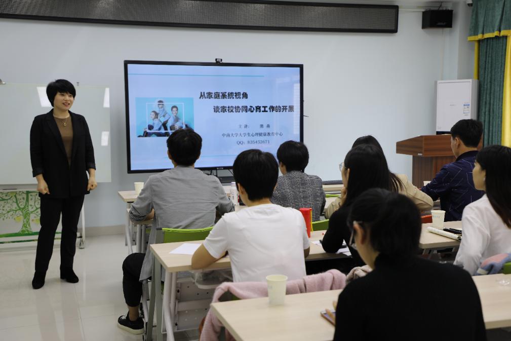 心理中心熊燕老师从家庭系统的视角给学员们介绍了家庭系统常见的心理问题及其对孩子的影响,并就家校如何协同开展心育工作进行了详细的讲解。