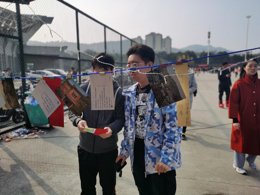 活动开始之前,各成员于早上七点集合开始布置场地,于八点正式开始。活动现场分为很多的游戏摊位,其中有猜字谜、找纸条,做好事等多种游戏,活动还设置了奖励规则,集合不同游戏过关的卡片便可进行抽奖。活动中,同学们都很融入游戏当中,笑声连连,活动氛围颇为热烈,现场就是一个活力的游乐园。