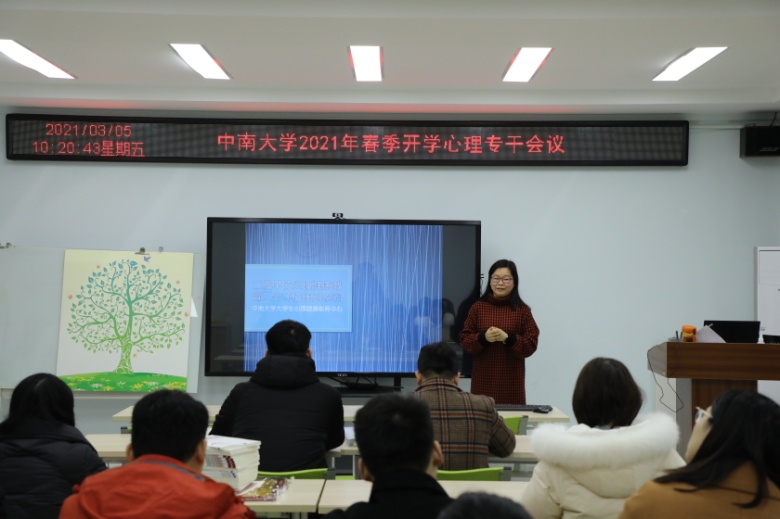 王梦翔老师对解心团工作安排进行了说明;谭鑫老师提出将中心心理咨询的值班表信息打印出来,粘贴在学生寝室门后,让心理求助方式随时可见,让学生的心理求助意识得到提升,并对学院可能会收到的咨询师给的心理健康状况告知书作了解释和说明,对本月底将开展的叙事疗法培训进行了预告;谭林湘老师对辅导员拓展培训师班的安排进行了说明;姜美霞老师介绍了与心理育人课程相关的工作,并对心理专干老师们一直以来的支持表示了感谢;祁琪老师对本学期非常重要的校园文化活动的安排进行了预告,除传统的各类大赛之外,鼓励学院举办和承办更多体验式活动,此外,也提出各院要继续加强朋辈互助队伍建设,为学生心理健康保驾护航;曾晓玲老师对中心宣传相关的工作进行了介绍,简要说明了公众号各个栏目的内容,鼓励各位心理专干老师转载和转发优质文章和活动,让更多的同学了解和心理中心相关的信息;马晓虹老师对重点关心学生及危机干预方面的内容进行了讲解,强调按照标准对案例进行系统入库,对休复学学生心理中心面谈安排、案例督导工作安排进行了说明,并提出学院需将朋辈队伍专业培训及督导常规化。
