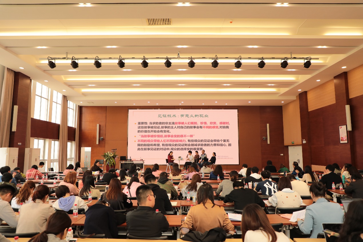 下午,赵静波教授进行了现场演示,邀请了一位来访者和三位见证者共同体验治疗过程,通过与来访者的交谈对话,以及局外见证者的发言,来访者的故事被看到、珍惜、欣赏,共同建构了故事的独特意义。
