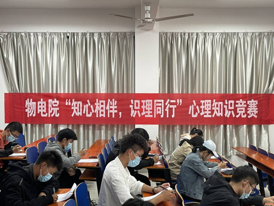 为加强学生心理健康教育,普及学生心理健康知识,营造良好心理健康教育氛围,10月27日下午两点,物电院“知心相伴,识理同行”心理知识竞赛在物理楼121,122,123室正式开始。