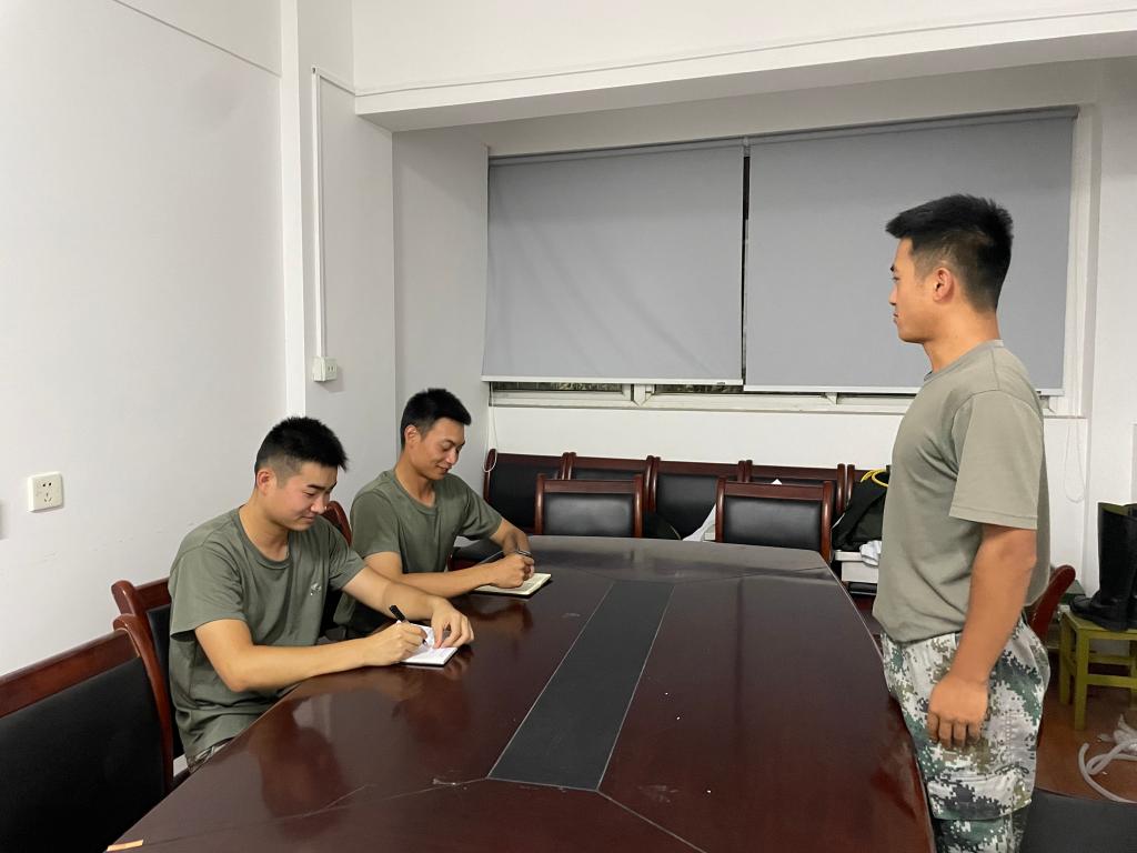 授课完成后,军训教官自训营组织了参训排长的考核和评比。全体参训排长随机抽签决定参考顺序,按照评比流程进行心理基础知识应知应会和军训应急情况处理两大项内容的考核,通过考评检验学习成效,促进成果转化。自训营教导员刘亚帅指出,通过对参训排长进行考核,确保排长掌握学习内容,再由参训排长对排内教官进行考核评选,能够更好地服务新生、服务军训,共同推动军训心理服务工作进一步发展。