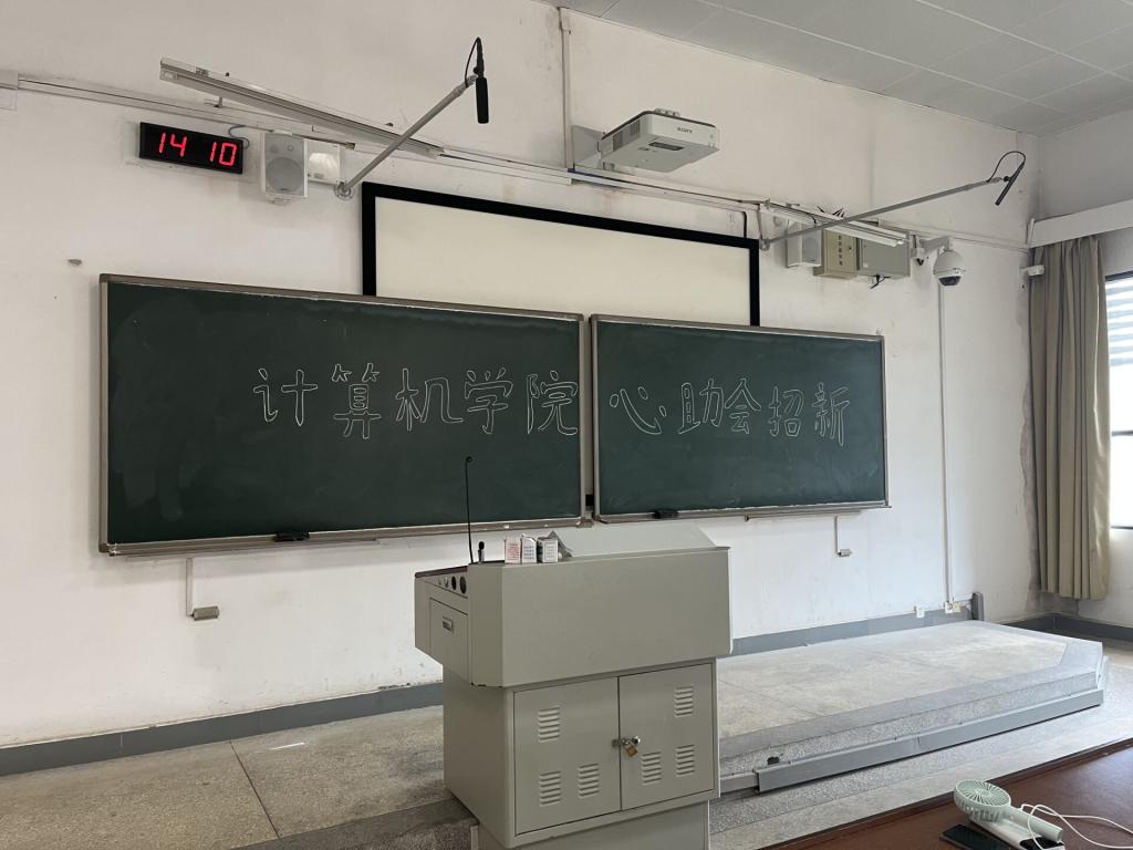 面试开始前,心助会成员提前到达面试场地,进行必要的准备布置工作。准备工作主要包括黑板标题书写,海报、横幅张贴以及面试礼品摆放。并且在此期间,各部门部长对面试流程及面试问题进行了最后的商讨确认,以确保招新面试顺利进行。