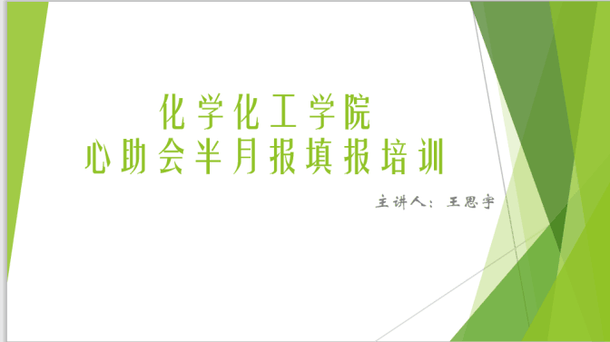 为帮助我院各新任朋辈心理互助队队长尽快熟悉工作,增强团结凝聚精神,提高责任意识,化学化工学院朋辈心理互助会于9月17日上午以线上会议的形式举行了秋季学期半月报填报培训活动。学院朋辈心理互助会培训部王思宇面向2021、2022级本科生互助队长、2022级研究生互助队长详细讲解了朋辈互助操作系统的使用方法并进行了答疑。