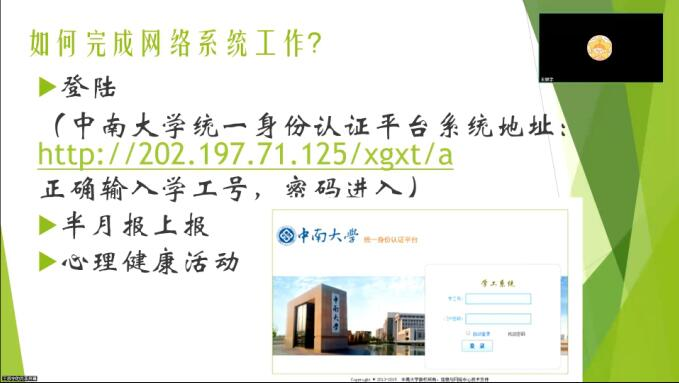 各班心理委员登录会议后扫描二维码有序签到。会议开始,王思宇同学向各心理委员讲解了此次培训会的目的,介绍了网络填报的基本情况,并通过PPT向同学们演示了半月报的填报方法、具体操作流程和注意事项。讲解结束后,王思宇同学补充了一些具体操作中的细节,解答了半月报上报时间、系统操作中常见问题、权限出现异常该如何处理等问题。