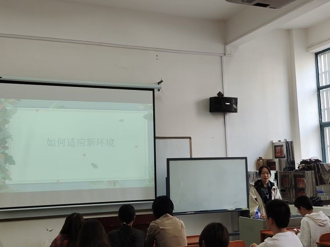 首先,应用化学2104班生心委李沁柯同学针对新学期同学们如何适应新环境,从学习、寝室生活、学生组织与社团、心态调整与社交等方面进行了自己的分享,提醒大一同学调整状态,注重学业,积极面向大学生活。随后,应用化学T2101班生心委张茜同学分享了她针对大一大二同学可能存在的开学焦虑所收集的学长学姐以及辅导员老师的建议,并结合自身的经历为大二的同学提供了自己的方法。