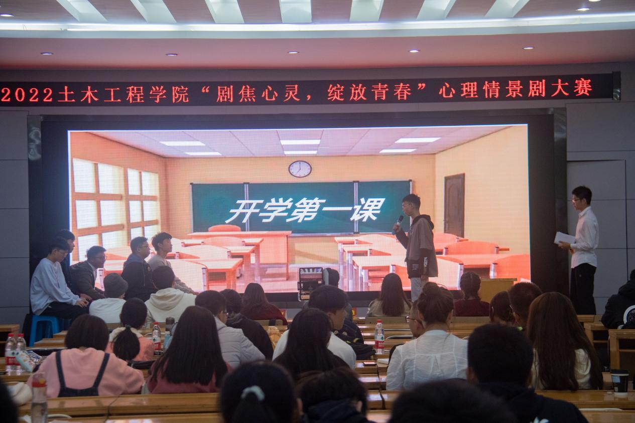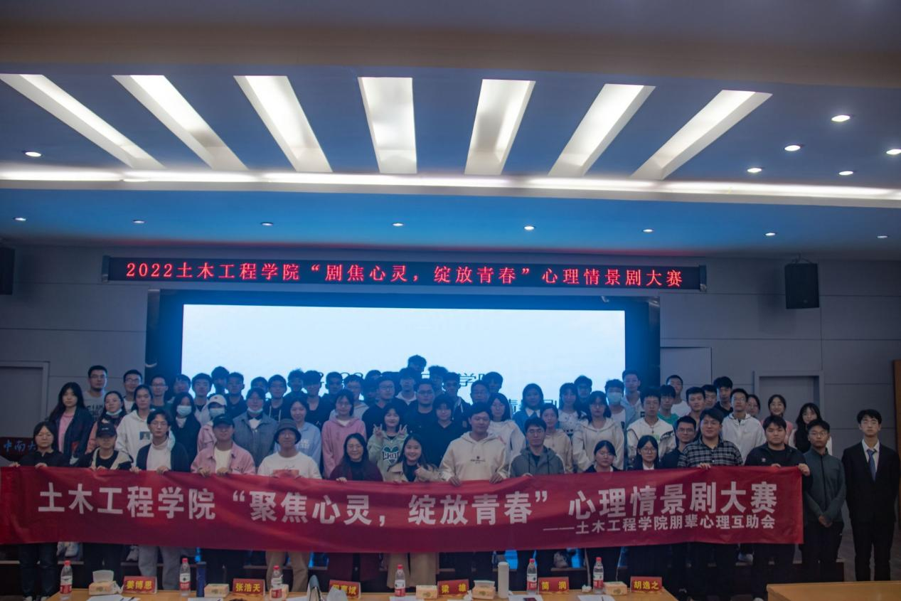 2022年10月9日下午2:50,由中南大学土木工程学院朋辈心理互助会主办的“剧焦心灵,绽放青春”心理情景剧大赛在校本部立言厅顺利举行。出席到场的评委有土木院心理专干、2020级辅导员简润老师,2021级辅导员周惠斌老师、姜博恩老师,2022级辅导员梁雄老师、张浩天老师,和土木院心助会副主任胡逸之。