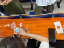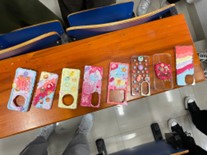 接下来是同学们制作手机壳的展示与分享。蓝色的外壳装点星星月月的饰品,精致中不乏可爱;彩虹外壳修饰的小碎钻,缤纷绚丽;花样繁多的贴纸在透明壳的映衬下更显得剔透……同学们的创造力与审美力,在这次手机壳制作活动中充分展现。