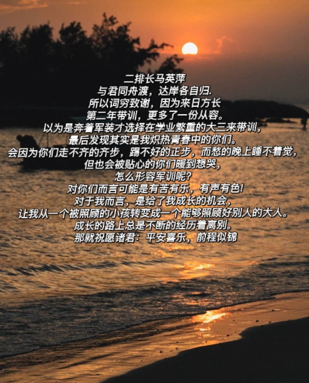 活动期间,我们收到了许多小伙伴的投稿,有对教官们的衷心感谢,有对个人经历的回忆,有真挚的同学情,也有令人难以忘怀的小确幸。这些难忘的军训片段,像万花筒一样,使这二十多天的迷彩生活变得多姿多彩。相信每个人在这段日子里,都感受到了独特的温暖与美好,学会了爱与坚持,收获了感动与成长,对未来的生活也有了更多的思考与憧憬吧。这段时光,值得被每个人永久珍藏。