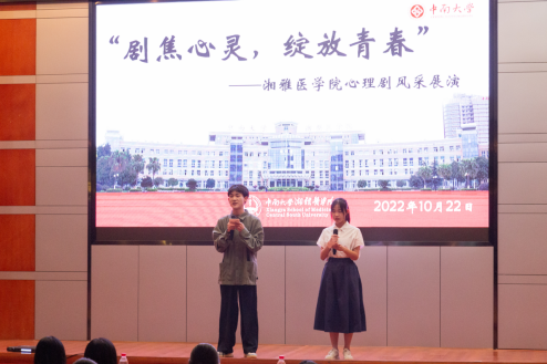 为丰富学生课余生活、提升学生心理健康水平,中南大学湘雅医学院朋辈心理互助会于2022年10月22日晚在湘雅新校区福庆楼四楼国际报告厅,举办了“剧焦心灵,绽放青春”心理情景剧大赛。出席本次大赛的评委老师有湘雅医学院朋辈心理互助会指导老师王丹老师、辅导员任安霁老师、胡慧楠老师、蒋忆遥老师以及五名学生评委,大赛现场由梅力丹、熊滨两位同学主持。