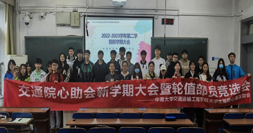 道阻且长,行则将至。在心助会全体成员的努力下,2022下半学期的工作圆满结束。为更好的开展下一学期的工作,交通院朋辈心理互助会于2023年3月11日上午9点在A座103开展心助会新学期大会暨轮值部员竞选会,心助会全体成员参加。