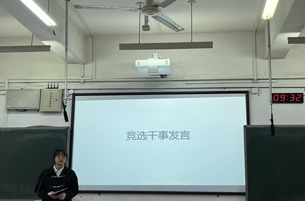 大会第二项,副会长郭旭发言,介绍新学期轮值制度及会长团竞选。各竞选干事轮流上台发言。每一位候选人都做了充分的准备,总结过去一学期的成绩,明确目标及未来方向。他们侃侃而谈,沉着冷静,自信大方,向大家展示着最好的一面。九位候选人竞选演讲完毕后,由郭旭副会长在心助会工作群中发起匿名群投票。在九名竞选干事中,刘一、许灵杉、邓恒慧、王宇超、李佳艺五位干事获得轮值会长团的资格。