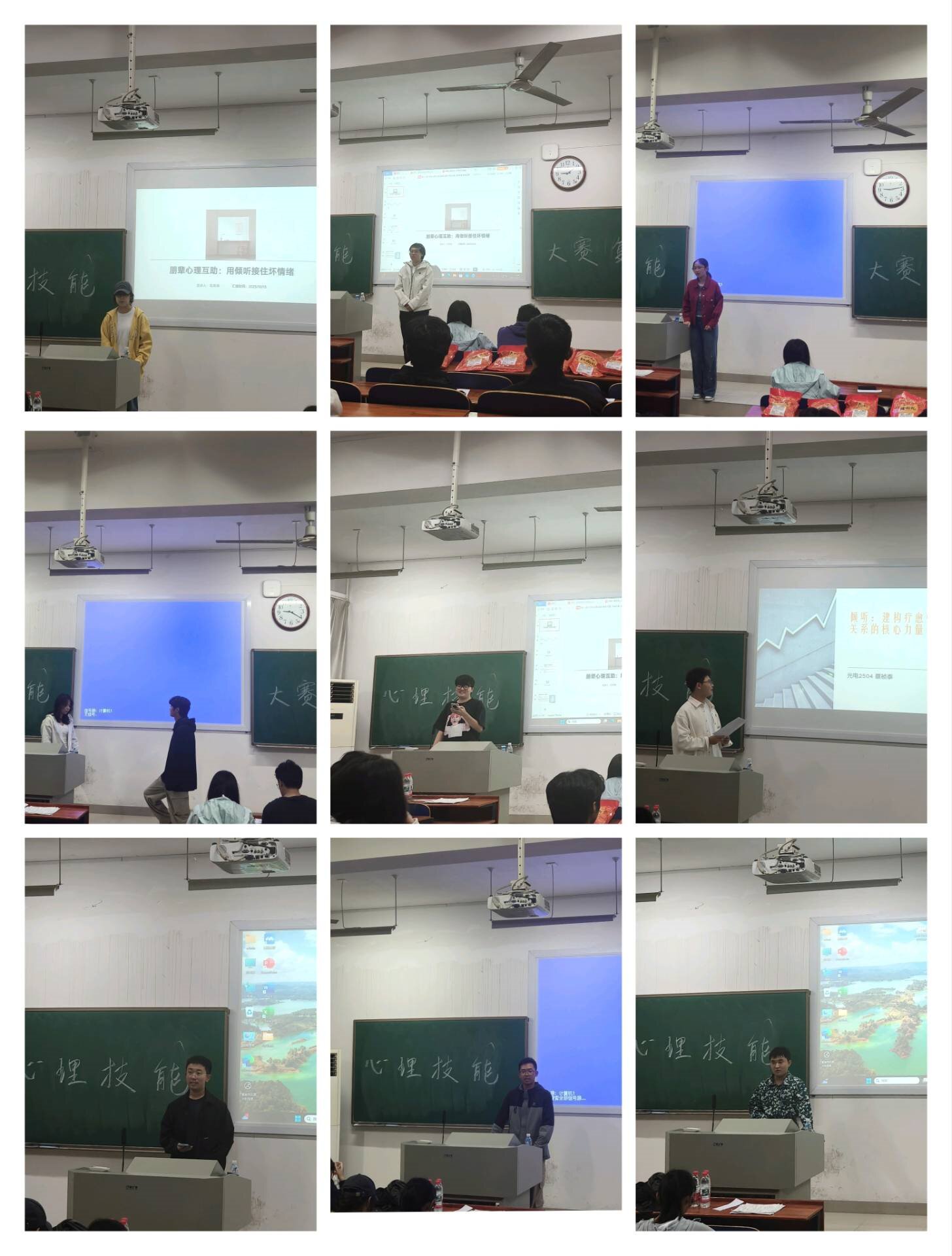 10月13日晚,复赛在物理学院123教室火热开启。八位晋级选手围绕理论宣讲与情景模拟展开终极比拼。同学们用生动的讲述和清晰的逻辑让原本晦涩难懂的理论变得清晰可感,赢得了在场评委和观众的一致好评。赛后,现场举行了简短而隆重的颁奖仪式。学院活动负责人为获奖同学颁发荣誉证书与精美奖品,并勉励大家以赛促学、以学促行,把心理技能真正转化为生活中切实可用的小技巧。