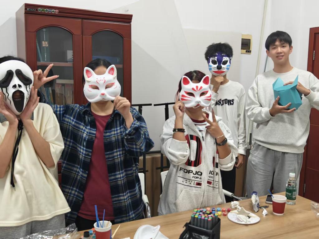 同学们在面具创作中,悄然卸下了表达的心理负担,尽情且自由地释放内心的情绪。同学们积极主动地与周边同学交流创作心得,在思想的碰撞中努力与他人相互理解、达成情感共鸣。在工作人员的精心组织和参与同学的热情投入这双重努力下,此次“假面派对”活动为大家留下了一段充满创意与温暖的美好回忆。
