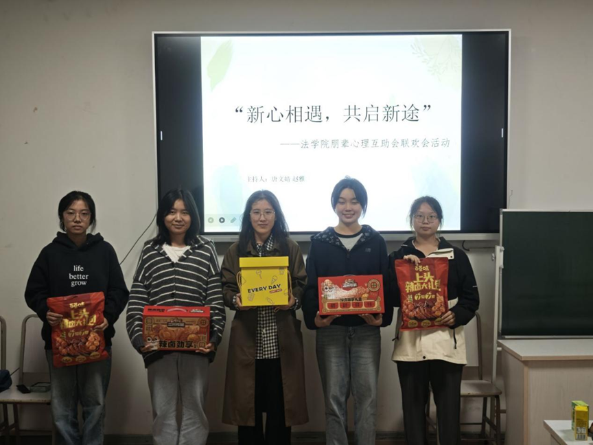 在金秋送爽、丹桂飘香的时节,中南大学法学院朋辈心理互助会如约迎来一批朝气蓬勃的新面孔。为帮助新成员们快速融入法学院朋辈心理互助会大家庭,提升团队协作效能,2025年10月18日19:30,中南大学法学院朋辈心理互助会联欢会活动于文法楼410室召开。