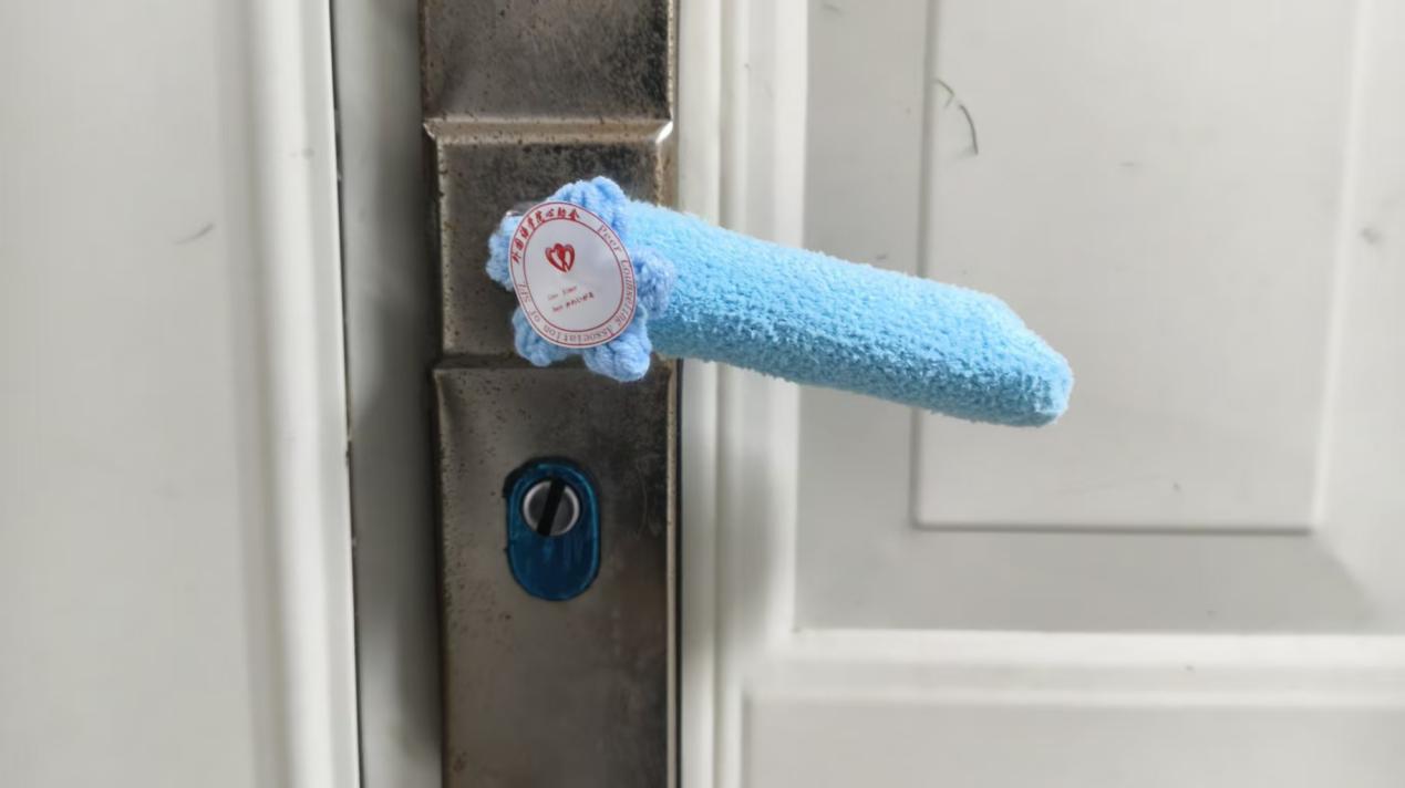 活动期间,心助会的干事们分工协作,带着提前准备好的保暖保护套,逐一为外语楼的教室门把手“穿上新衣”。这些保暖套不仅能在低温天气中为师生的双手提供温暖守护,更以其可爱的造型为冬日的外语楼增添了一抹温馨的色彩。