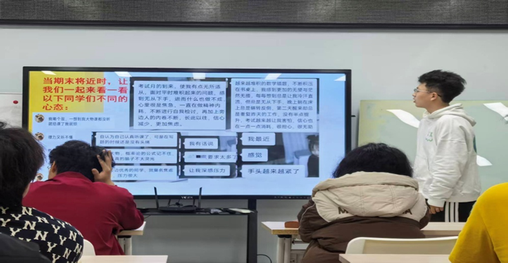 之后,培训部部长戴越具体讲述了压力的分类,压力的表现,压力的影响与如何调节压力。进一步明确生心委员的职责,更好的帮助同学们维护身心健康,改善情绪,提升幸福感,促进和谐的人际关系。我们应该时刻关注自己的心理健康,主动调节压力,做情绪的主人,与压力和平共处,将其转化为提升生命质量的催化剂。