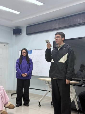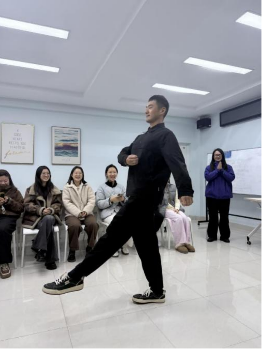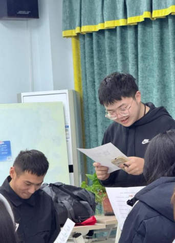 活动伊始,团辅老师组织开展了系列破冰游戏。“桃花朵朵开”通过轻松互动,让同学们在肩部按摩等简单肢体接触中迅速拉近距离;“王老太太去买菜”考验团队协作能力,同学们根据提示快速组队,未成功组队者即兴表演才艺,现场气氛活跃;“进化成人”游戏将活动推向高潮,同学们通过猜拳完成从“鸡蛋”到“人”的进化过程,最后未能“进化”的同学以精彩表演赢得掌声。