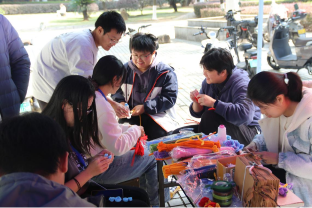 活动伊始,参加活动的同学们抽取盲盒留言进行传递,将暖心话语传递给身边人。接着,同学们移步另一板块进行扭扭棒手工创作,静下心来享受放松时刻。这种盲盒存言、定向传递的模式,既让参与者畅所欲言,也让接收者收获惊喜,让情感双向流动。这几个环节兼具趣味性与人文性,吸引了众多同学参与,传递出大家内心的温情与感动,营造了互助友爱的文化氛围。