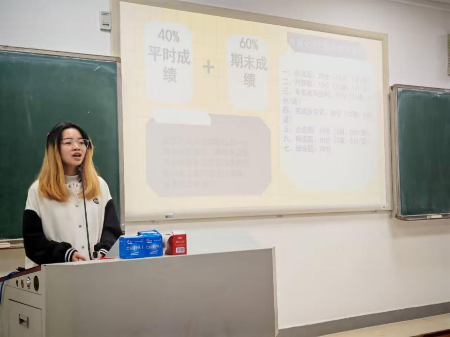 随后,由预防2401班胡怡璇同学进行有机化学的分享。她细致地为同学们介绍往年考试试卷的题型,告诉大家如何在考试时高效拿分。此外,她还建议同学们合理利用网络课程资源,拓宽学习渠道,积极巩固知识。