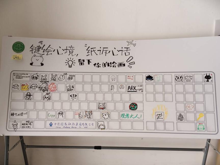 在“键绘心境”区域,一幅印有键盘图样的KT板成为了同学们创意的画布。大家纷纷选取自己心仪的“键帽”,用画笔将其填满。每一个被精心绘制的区域,都是一次内心世界的直观外化,将平日里隐藏在代码后的喜怒哀乐,通过画笔进行了生动的“调试”。
