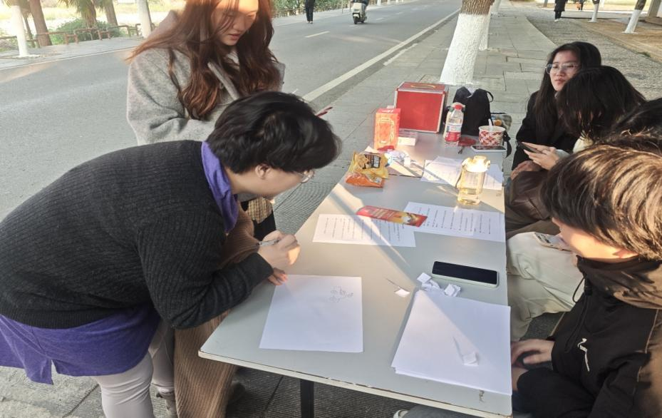 活动现场,四大普法互动游戏区有序布置,人气高涨,成为普法宣传的核心阵地。在互动开始前,同学们仔细阅读普法宣传手册,在图片与案例的引导中学习法律知识。在 “生活风险找找茬” 环节,参与者们从从校园生活实景图中圈出刷单兼职、出借身份证等法律风险行为;“emoji 猜猜猜” 将法律相关词汇转化为生动表情图案,同学们在脑洞大开的联想中加深了对法律术语的记忆;“你画我猜” 环节里,两人一组默契配合,用画笔勾勒 “正当防卫”“知识产权” 等法律概念,对法治知识的理解进一步深化;“快速判断挑战” 则通过辨析法律 “冷知识”,帮助师生厘清认知误区。