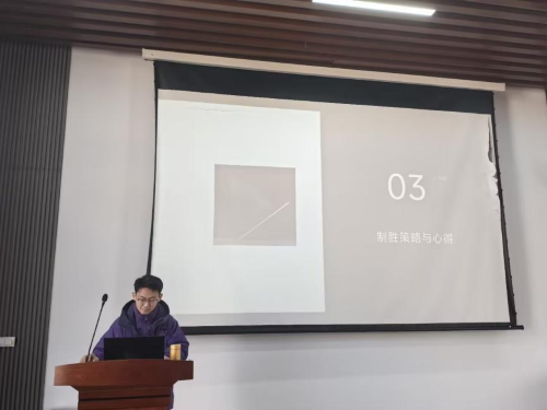 随后,汇报人梁业靖为在场同学系统梳理了保研的基本条件、申请流程、关键时间节点以及材料准备的要点与技巧。他结合自身申请经历与往年案例,对常见误区与隐形“加分项”进行了生动剖析,其贴近学生视角的解读方式,使复杂的政策条文变得清晰易懂,引发了同学们的浓厚兴趣与深入思考。