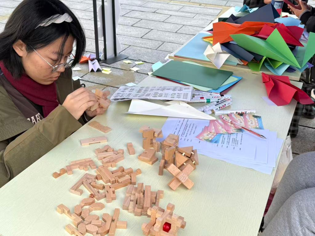 “乱麻‘快刀手’”游戏则侧重于考验参与者的专注力、耐心与临场应变能力。面对工作人员提供的鲁班锁道具,参与者需在一分钟内争分夺秒地尝试解开。在短暂时间内面对“混乱”保持冷静、寻找突破口的心理锻炼。成功解开者喜悦洋溢,即使未能在规定时间内完成,尝试的过程本身也是一次宝贵的专注体验。