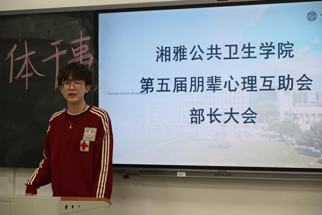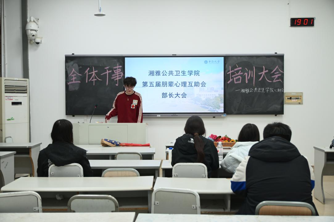 2026年3月8日19:00,湘雅公共卫生学院心助会部长会议在中南大学杏林校区福庆楼s104室顺利召开,会议由会长张建元主讲,旨在进行本学期心助会工作规划,清晰工作目标及工作内容,为各部门后续工作高效开展奠定基础。