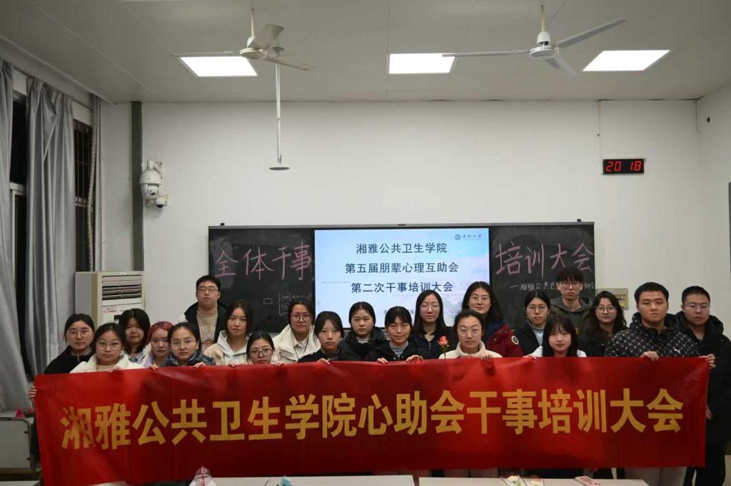 2026年3月9日,湘雅公共卫生学院心助会第二次全体干事培训大会在中南大学杏林校区福庆楼S104教室顺利举行。本次大会旨在为下学期工作开展提供清晰指引,扎实做好换届准备,并对全体干事进行系统性业务培训。心助会全体成员到场参会,大会由贾乐璇同学主持。