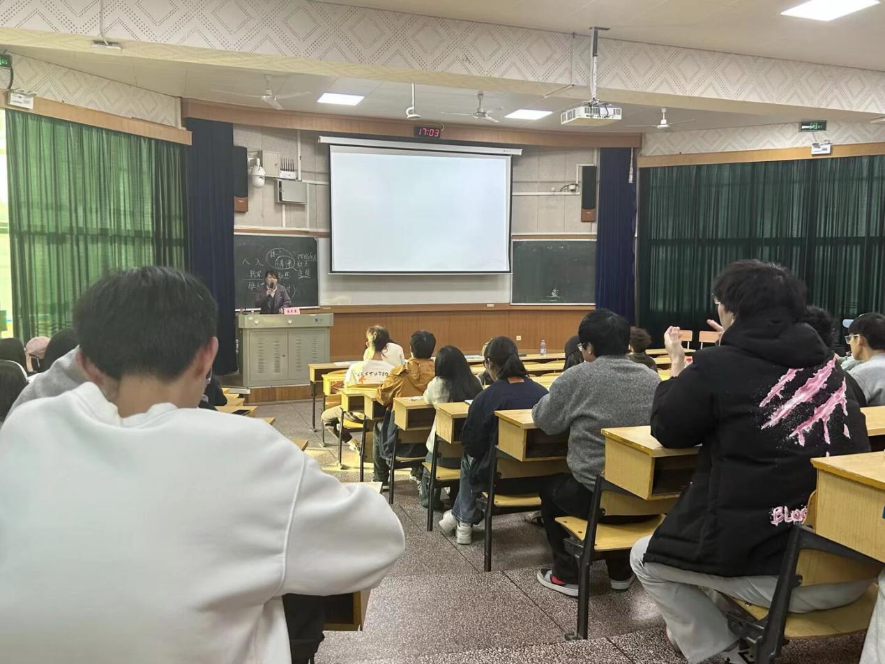 接下来,姜美霞老师围绕“5W1H”的培训议程开始讲解。她首先明确了心理委员的角色定位,强调“我们是谁”的职责使命;随后从对象、内容、时机、原因、方式五个维度讲解了识别与干预的实战指南,指导心委科学应对同学的心理困扰;在科普环节,她分享了如何用轻松自然的方式传递心理健康知识,打破偏见;最后着重强调了自我关怀,带同学们体验了科学放松自我的方式。