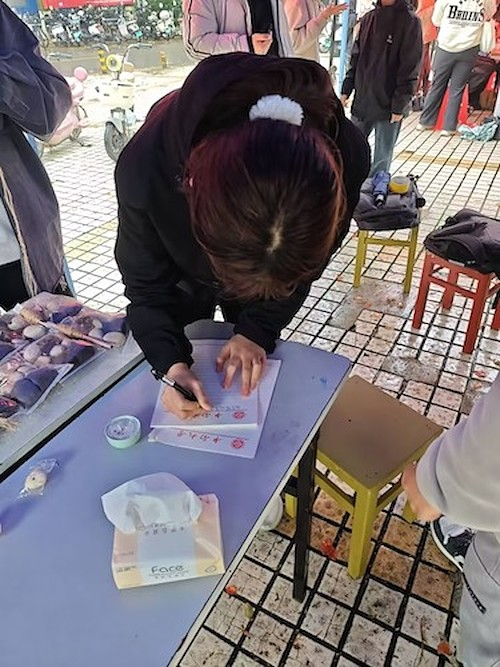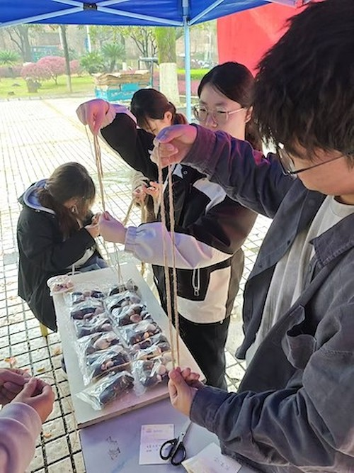 活动以“圈住快乐”“执笔释虑”“铃寄春安”三大环节展开,形式丰富且充满温情。“圈住快乐”环节里,同学们转动呼啦圈,在肢体的舒展与韵律的律动中甩掉烦恼,连续旋转满十次的参与者收获了精美的奖品,欢声笑语在广场上回荡;“执笔释虑”区域前,大家执笔落纸,将心中的焦虑、迷茫或烦恼诉诸文字、绘成图案,随后揉作纸团投入解忧箱,让心事随纸团封存,轻装上阵,完成投放的同学均领取到了暖心小礼品,在小小惊喜中感受温暖;“铃寄春安”中,同学们手持果壳、麻绳等材料,根据自己的喜好设计制作风铃,穿挂、系结,在指尖的专注创作中感受手工的治愈力量,一件件独一无二的果壳风铃新鲜出炉,成品由同学们自行带走,让春日的轻响常伴身旁,寄托美好期许。各环节工作人员分工明确、耐心引导,奖品领取有序高效,现场氛围温馨融洽。