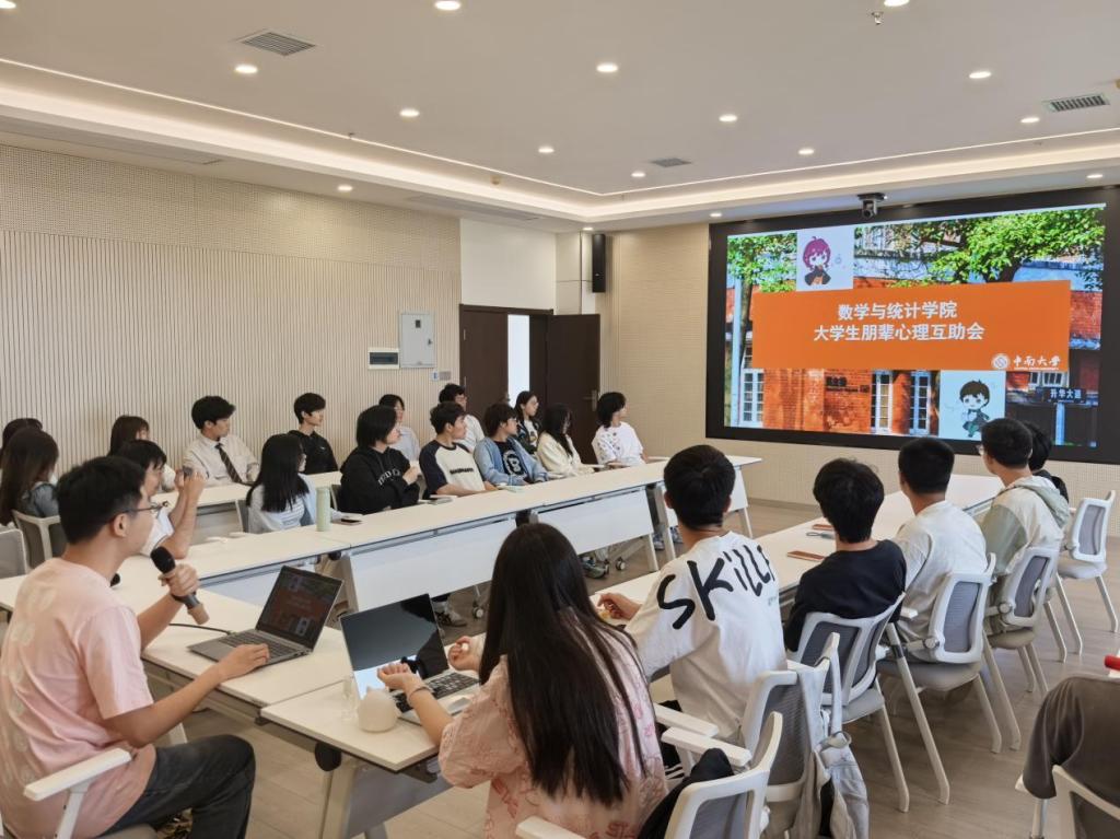 4月19日下午2时,计算机学院朋辈心理互助会和数学与统计学院朋辈心理互助会在潇湘校区信息楼525会议室共同举办了“心连数计·共启新章”朋辈心理互助会联谊活动。本次活动面向两院朋辈心理互助会成员,旨在搭建两院心助会的沟通桥梁,促进双方成员的深度交流与情感联结,并通过经验分享相互学习、取长补短。