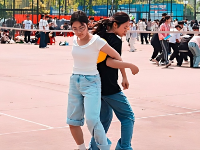 紧接着,情绪气球项目中队员两两夹球接力,对积极情绪气球妥善放置、对消极情绪气球合力挤爆,在游戏中学习接纳与调节情绪。一圈到底项目中,15名队员手拉手连成一排,不借助双手传递呼啦圈,在欢声笑语中突破身体与默契的双重考验。最后的三人四足项目里,各组队员的脚被绑在一起,以整齐的步伐并肩冲刺,赛道边此起彼伏的呐喊助威声,现场氛围走向高潮。