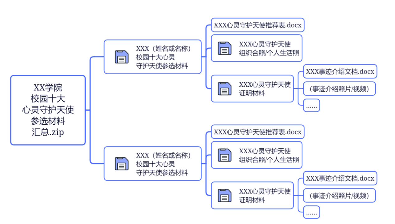 1.各二级单位需提交《xxx(团体全称或个人姓名)心灵守护天使推荐表》;
